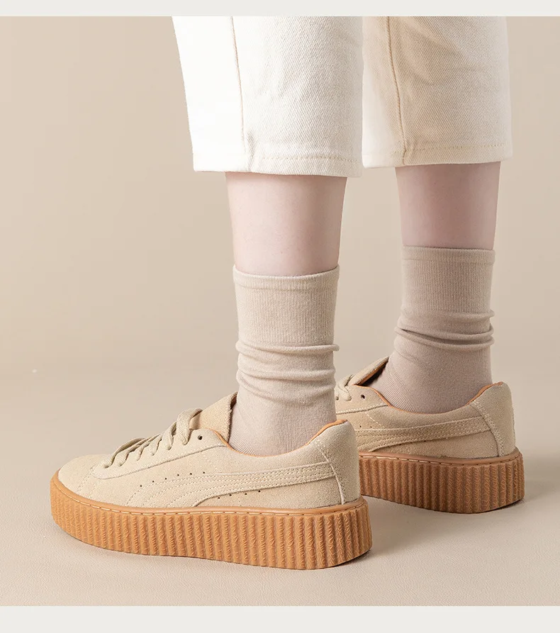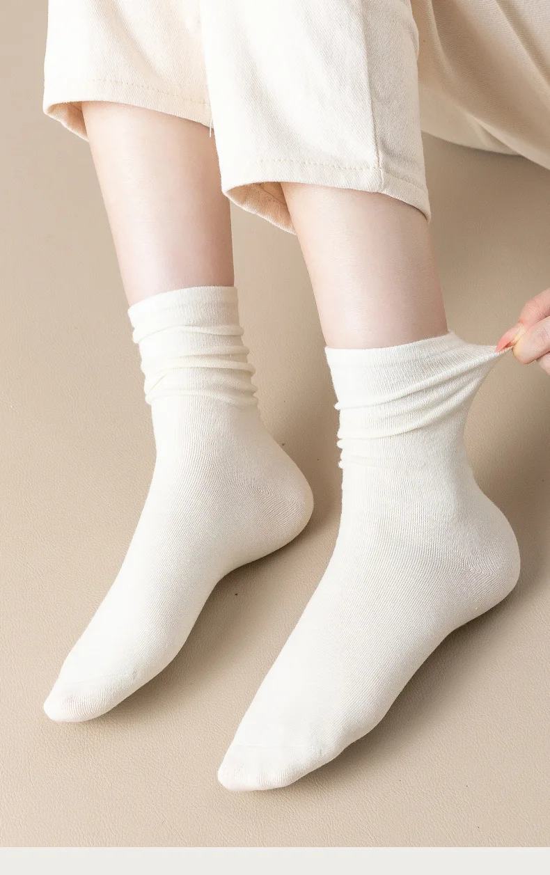5 Pairs Set Cotton Socks Medium Tube Knitted Loose Long Soft Solid Color Crew C